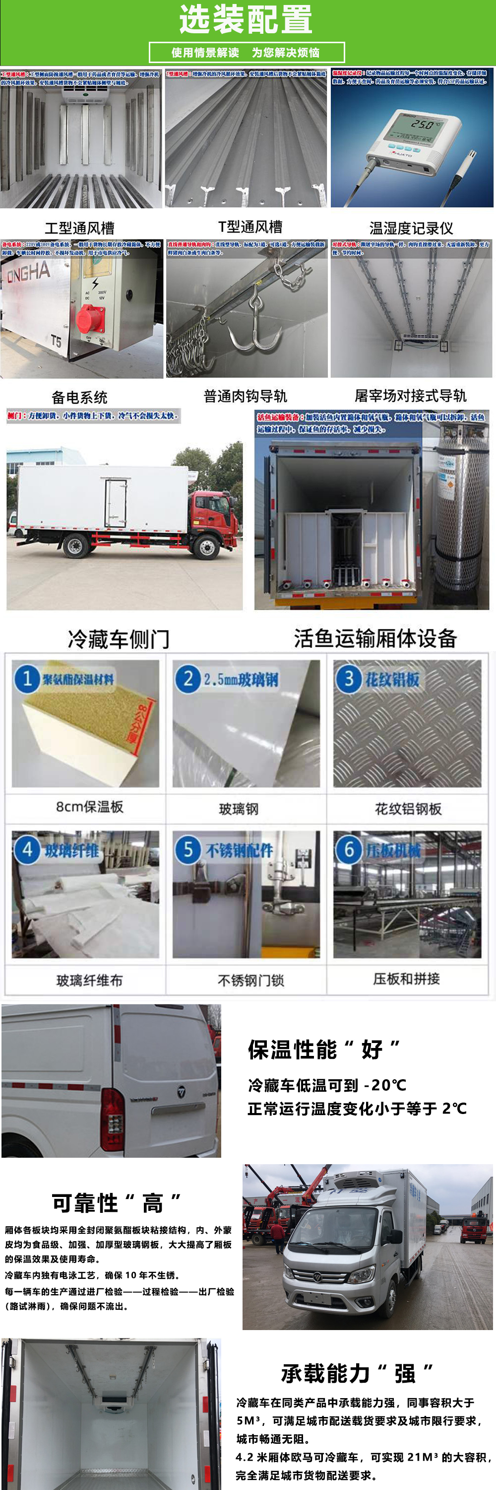 冷藏車是指用來維持冷凍或保鮮的貨物溫度的封閉式廂式運(yùn)輸車,冷藏車是裝有制冷機(jī)組的制冷裝置和聚氨酯隔熱廂的冷藏專用運(yùn)輸汽車,冷藏車可以底盤承載能力、車廂型式來分類。常用于運(yùn)輸冷凍食品(冷凍車),奶制品(奶品運(yùn)輸車)、蔬菜水果(鮮貨運(yùn)輸車)、疫苗藥品(疫苗運(yùn)輸車)等。