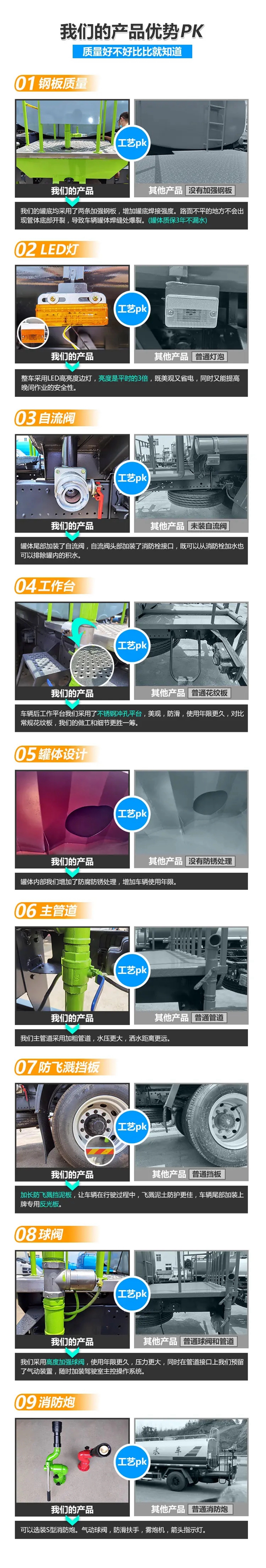 配5立方灑水罐,罐體采用優(yōu)質(zhì)武鋼4mm厚碳鋼板制作,罐體自動(dòng)焊;配置灑水車專用自吸式離心泵(可選用杭州威龍40-50泵);前沖、后灑、側(cè)噴、帶后操作平臺(tái)、帶高壓水炮(噴射狀態(tài)可調(diào)節(jié)成柱狀直沖、大雨、中雨、小雨、毛毛雨及霧狀,可連續(xù)調(diào)節(jié);360度旋轉(zhuǎn)),揚(yáng)程28米,帶自吸功能,消防接口,其他標(biāo)配。此車型環(huán)保免征齊全,上戶無(wú)憂。