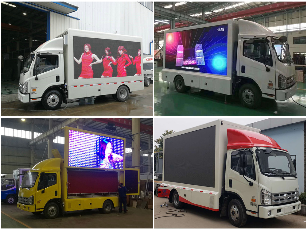 廣告車選裝配置:客戶可根據(jù)需求選裝屏幕清晰度(P10彩屏、P8彩屏、P6彩屏、P5彩屏、P4彩屏)、單面彩屏、雙面彩屏、雙面